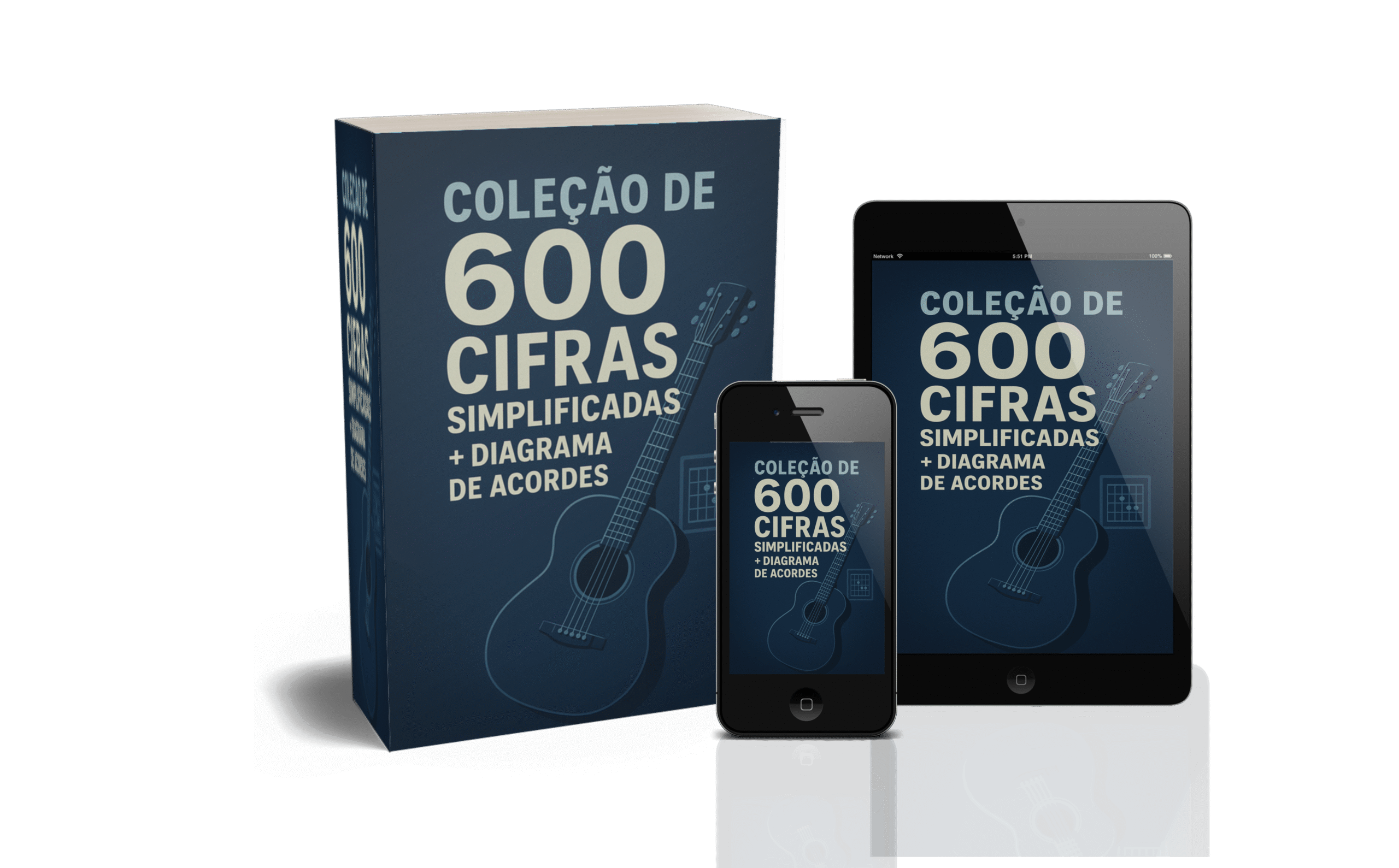 São 600 cifras organizadas, com montagem visual dos acordes direto no braço do violão. Ideal pra quem ainda confunde nomes, posições ou quer aprender do jeito mais fácil possível.
